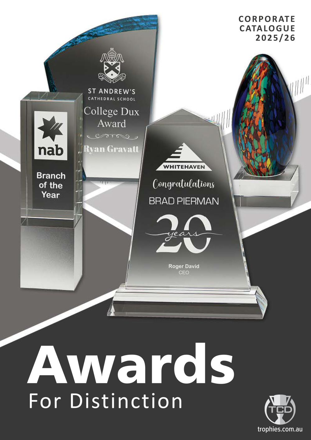 Enquire NowAlong with customised corporate trophies we also have an extensive catalogue of ready to purchase trophies you can view via the PDFs below. Simply select a style and contact us for a quote.